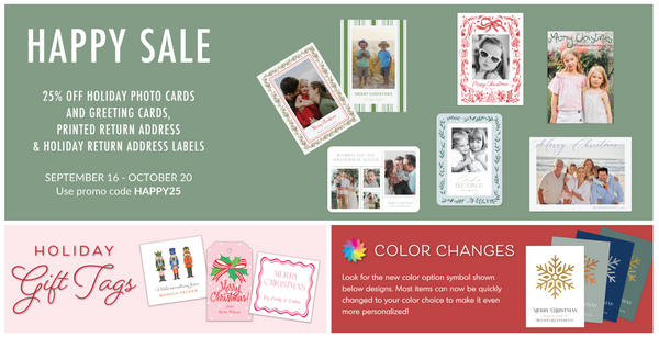 - 9/16-10/20 (25% off using promo code HAPPY25)