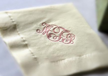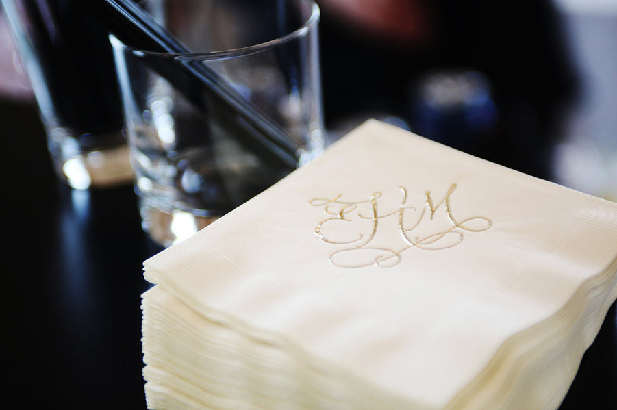 Similarly, the typically utilitarian napkin can be gussied up with a monogram and/or your wedding date.