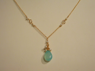 Last week brought some delicate yet stunning new jewelry to the shop. Incorporating pearls, sapphires and chalcedony, Christina Stankard creates bright earrings and luminous necklaces. All pieces are handmade in her Brooklyn studio -- we imagine it must be filled with natural light, to inspire such ethereal pieces. To see a gallery of her work, check out her website. To adorn yourself with these gorgeous pieces, stop by the shop! I think any one of these pieces would be especially lovely as wedding jewelry....