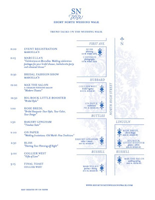 The event starts at 11 am and runs till 4... trend talks throughout the  day will feature inspired ideas on all things wedding. A fashion show  with gowns from Big Rock Little Rooster, hair and makeup by Max The  Salon {Charles Penzone} are sure to be a highlight and we'll cover every topic from planning to gifting, flowers to festive dining, delicious cakes and divine invitations!