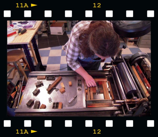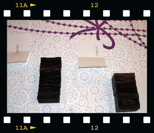 We each tossed words in to a hat and randomly selected our text to be  hand set in vintage wood block type. Makes any typophile swoon!!