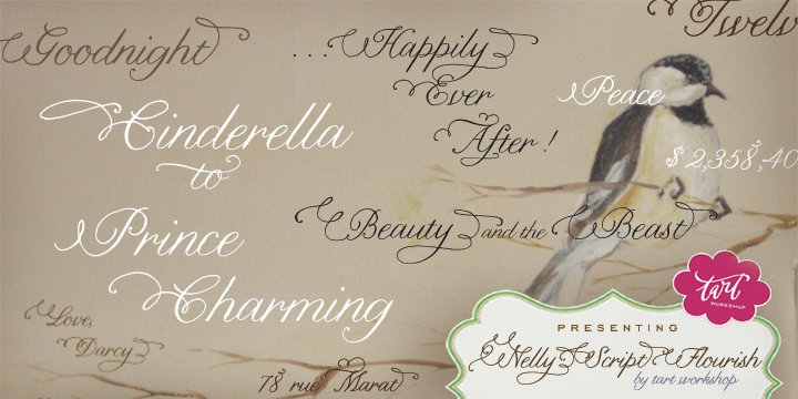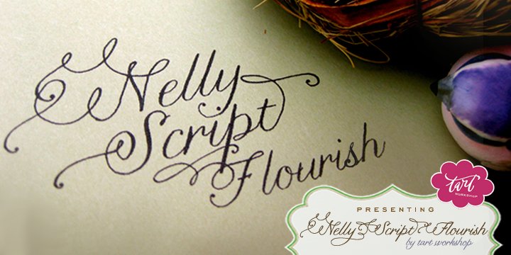 Nelly Script Flourish is designed by letter artist and illustrator Krystal Kluge and the Tart Workshop. Tart is the perfect adjective- the patisserie of type- it adds a delicious curl and fairy tale swirl to make for a delightful invitation. Romantique and lovely!