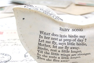 What is it about birds that we find so irresistible? Found these on Etsy at Cotton Bird Designs This British artist works with paper, vintage linen and other materials to create these charming birds- perfect for wedding and cottage adornments and I confess- I ordered a perfect pair for myself!