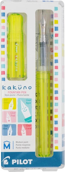 A black Pilot ink cartridge is included to get you started writing right away. It also accepts a Pilot CON-40 or CON-70 converter (sold separately). Novices will soon be on their way to becoming seasoned fountain pen users, and seasoned users will enjoy the fun, exuberant writing the Kakuno fountain pen delivers. Everyone can enjoy writing with a Kakuno fountain pen.
