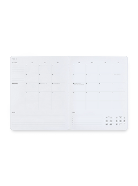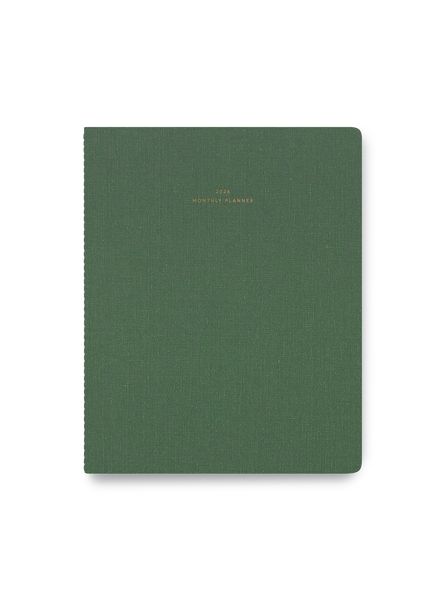 The Monthly Planner is sure to become a household staple for coordinating multiple schedules or big-picture planning. This 12-month planner features classic center sewn binding, a two-page month spread on premium text-weight stock, and extra pages for noting the important details. -Water-resistant bookcloth cover -Smooth, premium 100 lb text-weight stock -Foil stamped covers -Center sewn layflat binding -Individual boxes: 1.5” wide × 1.25” tall -Year overview -Conversion chart -Month spread, including key holidays -Lined pages for notes -SKU: MPN2026, MPF2026 -Jan–Dec 2026 -12-month -8” × 10” -0.2” product depth -44 Pages -2 lined notes pages at beginning of planner -11 lined notes pages at end of planner -0.54 lbs