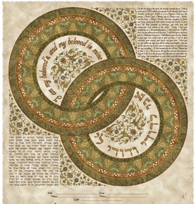 We are both different religions, me Jewish and my beau, Presbyterian, Our ceremony will not be religious in nature but certain traditions were important to us. I for example, really wanted a Ketubah- a Jewish marriage certificate.